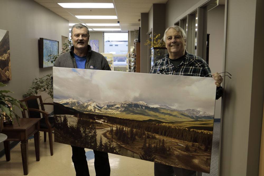 Photographer Bruce Deacon and client with canvas print at PageMaster. Bruce's work is available on our store.
